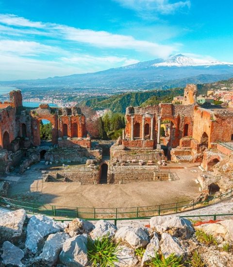 Tiempo libre para visitar el famoso Teatro Griego (Entrada al teatro no incluida) desde donde se puede admirar una vista increíble del volcán Etna y la Bahía de Taormina.